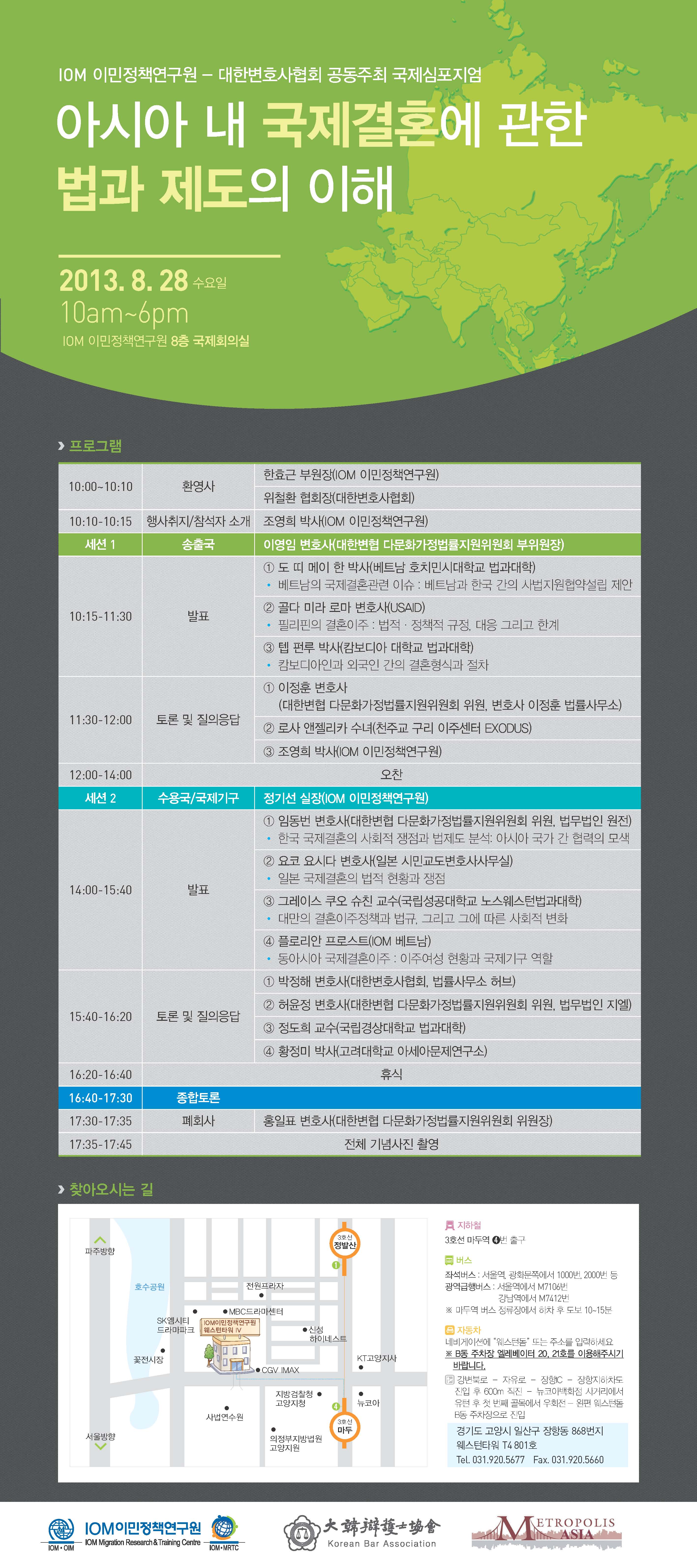 ◆ 주 최 : IOM이민정책연구원, 대한변호사협회