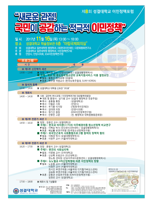 ▣ 주관 : 성결대학교 일반대학원 행정학과, 이민정책연구회
