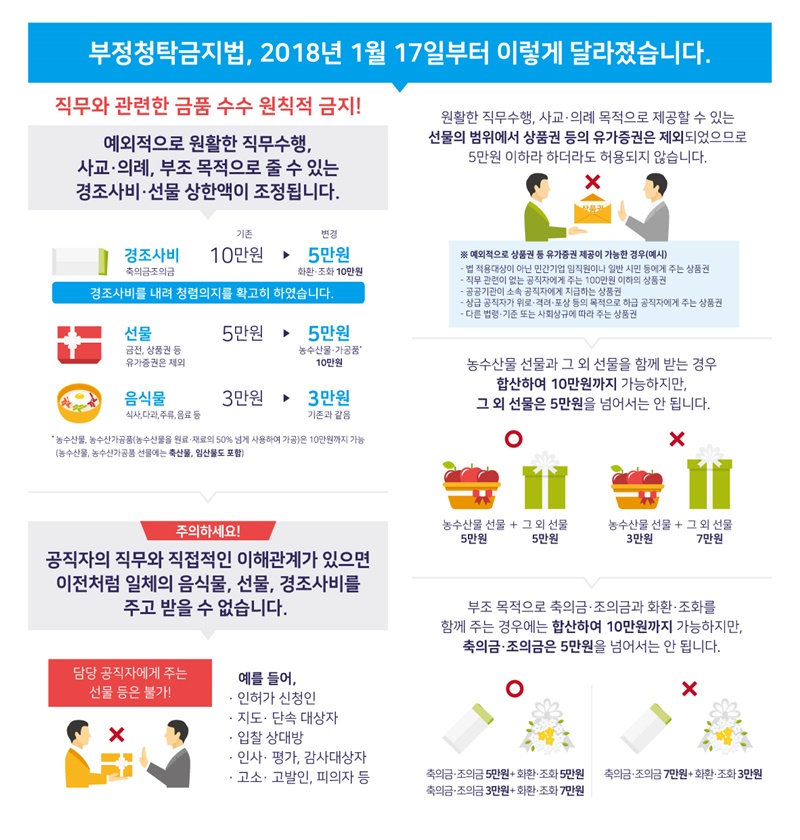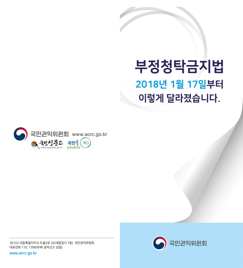 2018년 1월 17일 부정청탁금지법 개정 내용을 반영하고 있는 리플릿을 게시하오니 많은 관심 바랍니다.