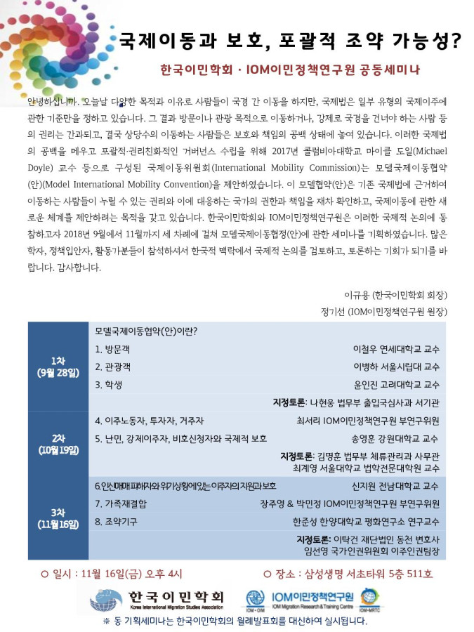□ 주 제 : (3차) 국제이동과 보호, 포괄적 조약 가능성?