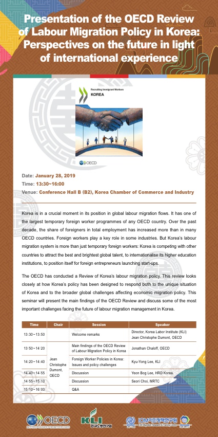 오는 1월 28일(월) OECD, IOM이민정책연구원, 한국노동연구원 공동주최로 두 권의 OECD 보고서 출판기념 세미나가 개최됩니다.