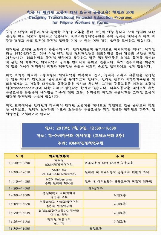 □ 주제: 한국 내 필리핀 노동자 대상 초국적 금융교육: 현황과 과제
