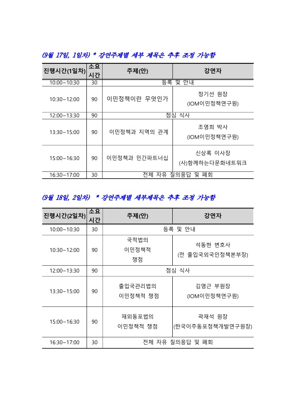 <민간 활동가 대상 이민정책‧이민법 열린강좌>