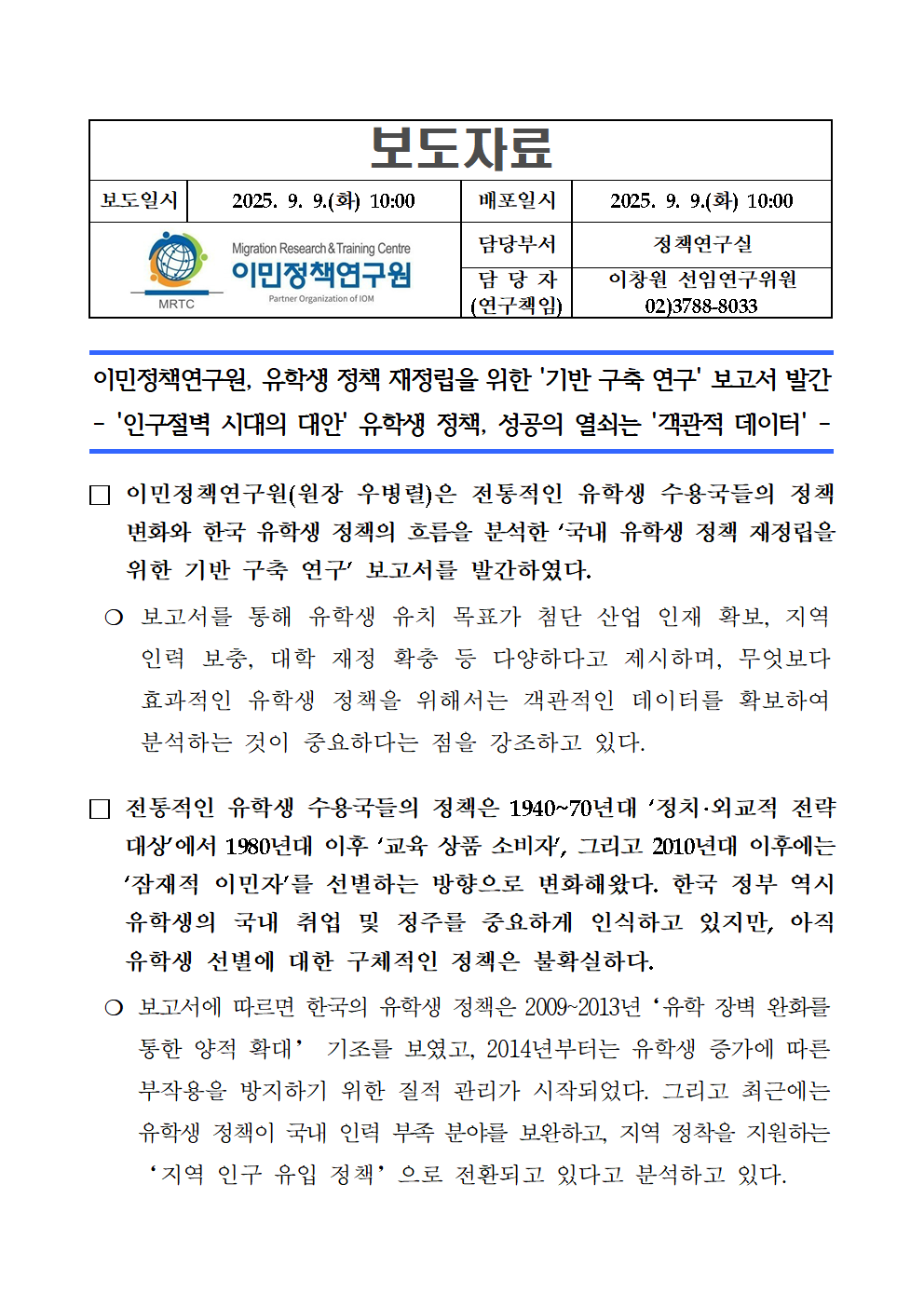 이민정책연구원은 데이터 기반의 연구 성과를 전문 교육 콘텐츠로 제작하여 확산합니다. 국내외 네트워크와의 전략적 파트너십을 통해 정책 실행력을 강화하고 있습니다.