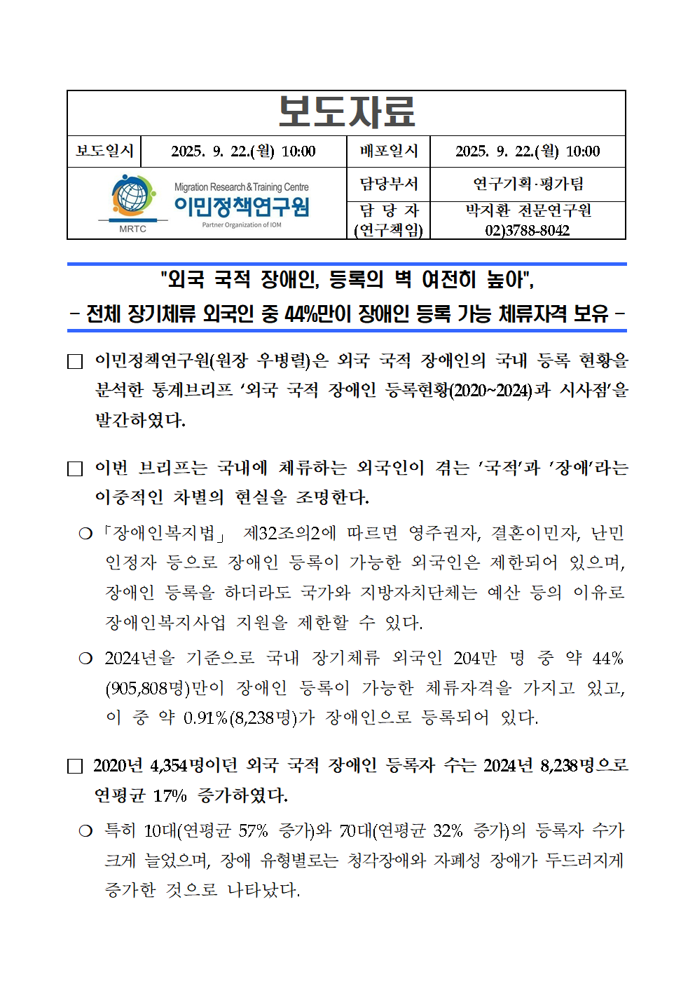 이민정책연구원은 데이터 기반의 연구 성과를 전문 교육 콘텐츠로 제작하여 확산합니다. 국내외 네트워크와의 전략적 파트너십을 통해 정책 실행력을 강화하고 있습니다.