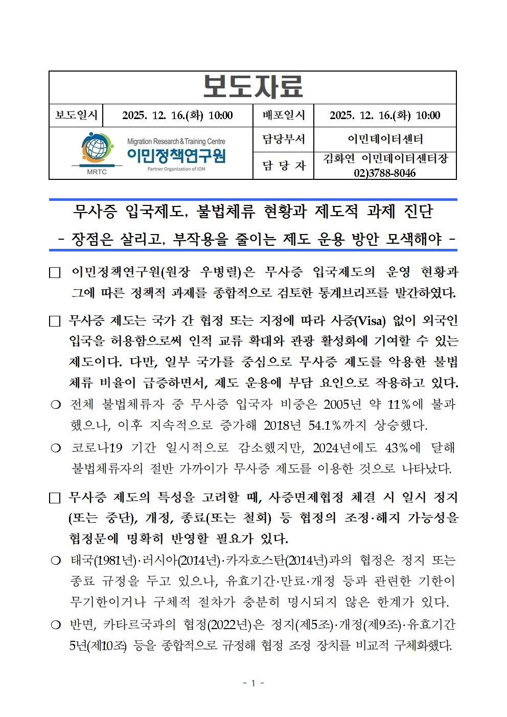 이민정책연구원은 데이터 기반의 연구 성과를 전문 교육 콘텐츠로 제작하여 확산합니다. 국내외 네트워크와의 전략적 파트너십을 통해 정책 실행력을 강화하고 있습니다.