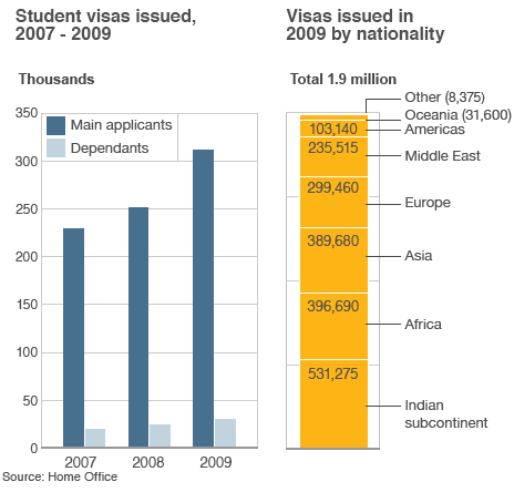 통계청은 2009년 외국인 순유입은 전년도에 비교해 33,000명이 증가한 196,000명을 기록했으며 학생비자 발급건수는 35% 증가한 362,015건 이었다고 밝혔다.