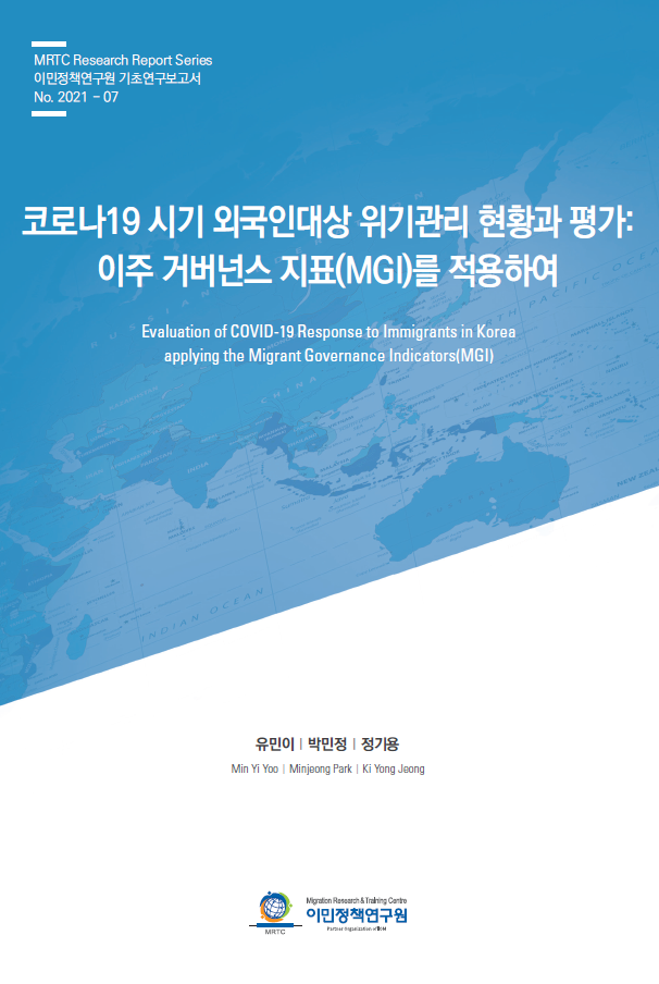 국제이주기구(IOM)에서는 이주거버넌스 지표(MGI) 중 코로나19 시기 정부의 대응을 평가하는 지표를 선별하였다. 본 연구에서는 이 지표 중 9개의 지표를 적용하여 한국의 외국인대상 코로나19 정부의 대응 변화과 평가를 살펴보았다. 한국정부는 감염병 위기 시기 비자제도의 유연한 적용이나 의료서비스에 대한 내국인과의 차별없는 접근성 등에 있어서 성과를 보였다. 한편 신규 입국 외국인에 대한 입국조치의 실행, 실업급여 및 재난지원금 등 사회안전망 접근성, 외국인 의료진 인프라, 코로나19 관련 외국인 데이터 관리 및 공개 등에서 보완해야 할 사항들이 있었다. MGI 외에도 사람의 국가간 이동에 대한 국제사회 협력 노력, 감염병 등 위기관리계획에 외국인을 포함해야 하는 문제, 감염병 관련 외국인에 대한 혐오 및 허위뉴스에 대한 대응 등에도 개선이 필요하였다.