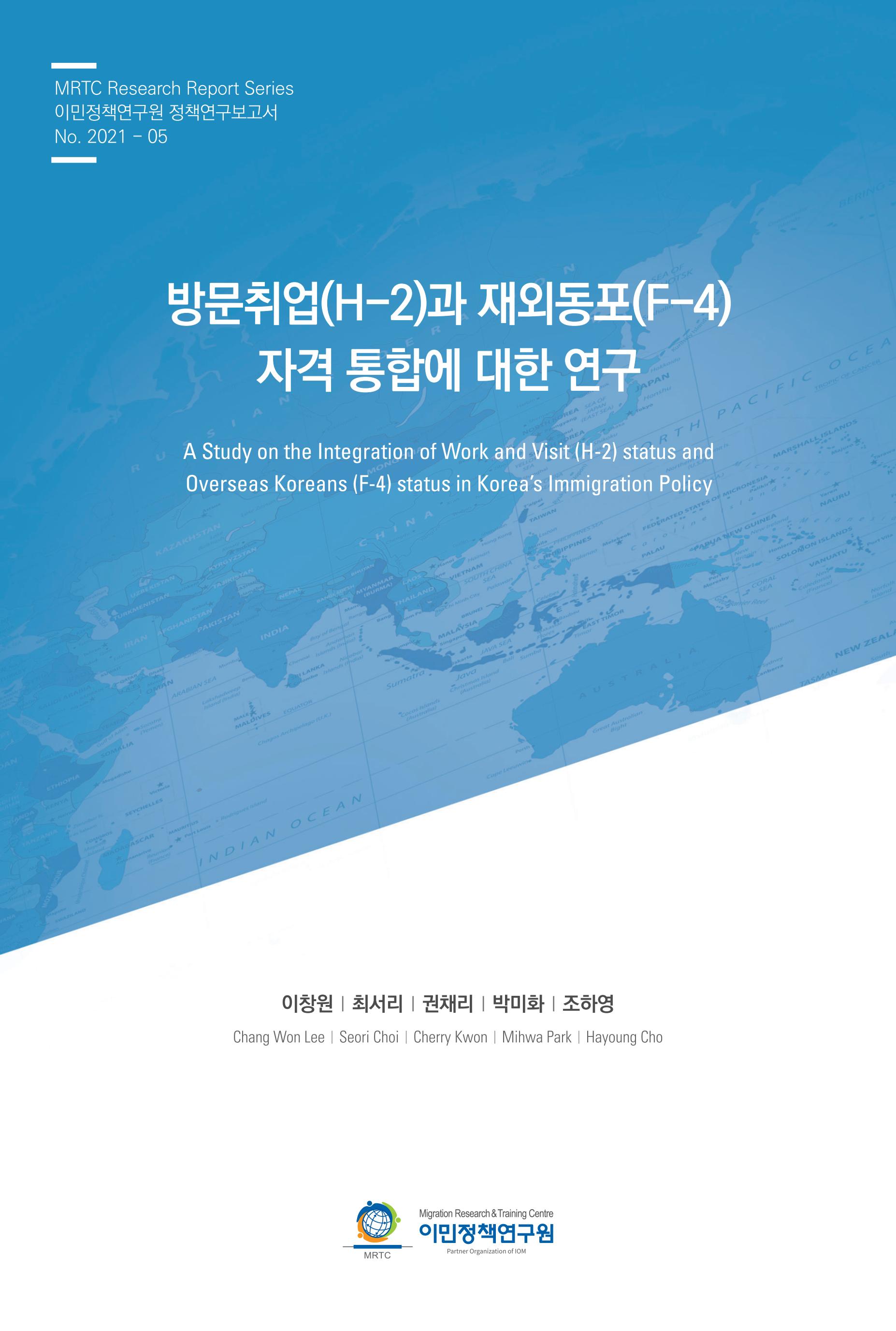 이 연구는 같은 외국국적동포임에도 불구하고 권리와 활동에서 차이를 두고 있는 방문취업(H-2)과 재외동포(F-4) 자격의 이원화된 체계가 국내에서 작동하는 방식 및 현실 적합성을 진단하고 개선방향을 제안하는 것을 목적으로 한다. 이를 위해 2장에서는 두 제도의 발생 배경과 연혁, 그리고 운영현황을 살펴본다. 3장에서는 「이민자체류실태및고용조사」 자료를 활용한 실태 분석을 통해 방문취업자(H-2)와 재외동포(F-4)의 실제 취업활동이 제도가 의도한 대로 구분되고 있는지 조사한다. 4장에서는 방문취업(H-2)과 재외동포(F-4) 자격 통합을 위한 구체적인 방안을 제언한다.