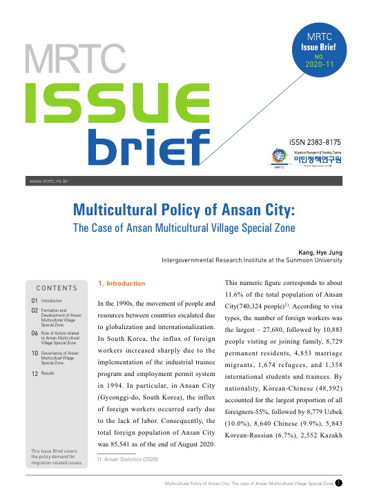 외국인 인구가 많은 안산시에서는 2000년대 초반부터 정부와 외국단체, 외국인지원단체 등이 사회통합을 도모하고 다문화도시 이미지를 높이기 위해 다양한 노력을 기울여 왔다. 그 결과, 전국에서 유일하게 성공한 다문화마을인 안산 다문화마을 특별구역이 만들어졌다. 이 연구는 경기도 안산 다문화특구의 개발 과정에서 중앙 정부, 지방자치단체, 민간단체를 포함한 다양한 행위자들의 주요 역할을 조사하기 위해 민-관 협력사항을 분석하고 그 결과를 도출하는 것을 목표로 한다.