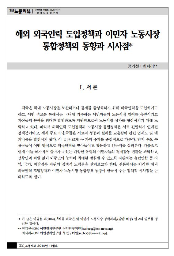 책임연구원: 정기선(IOM이민정책연구원), 최서리(IOM이민정책연구원)