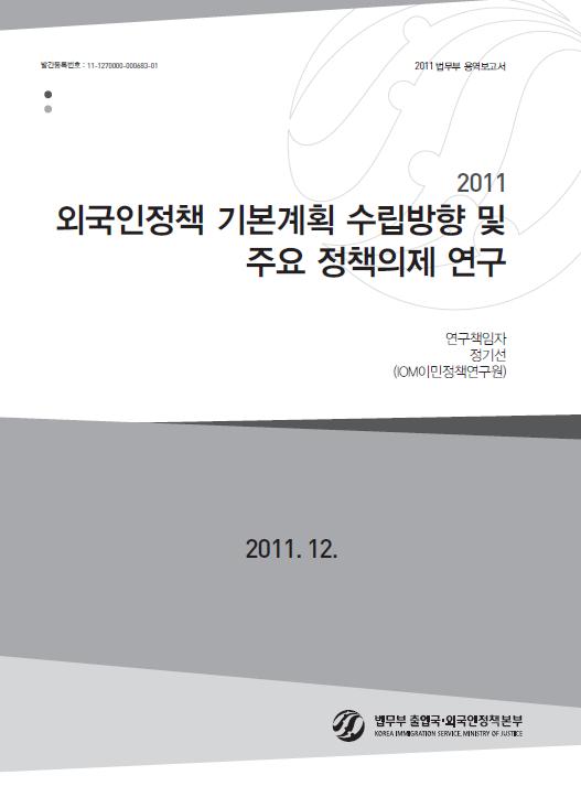 공동연구자: 강동관(IOM이민정책연구원), 김석호(성균관대학교), 김혜순(계명대학교), 김환학(IOM이민정책연구원), 배병호(성균관대학교), 신지원(IOM이민정책연구원), 이민경(대구대학교), 이상림(IOM이민정책연구원), 이완수 (IOM이민정책연구원), 이진영(인하대학교)