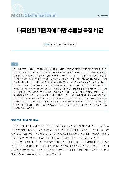 | 38 | 2025 | [통계브리프] 내국인의 이민자에 대한 수용성 특징 비교 | 홍성준 | 80 |