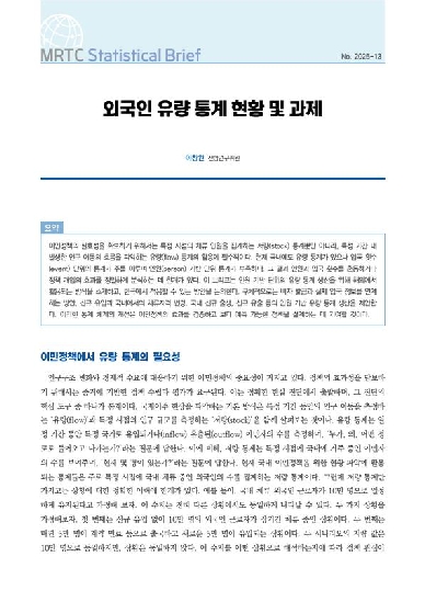 | 39 | 2025 | [통계브리프] 외국인 유량 통계 현황 및 과제 | 이창원 | 51 |