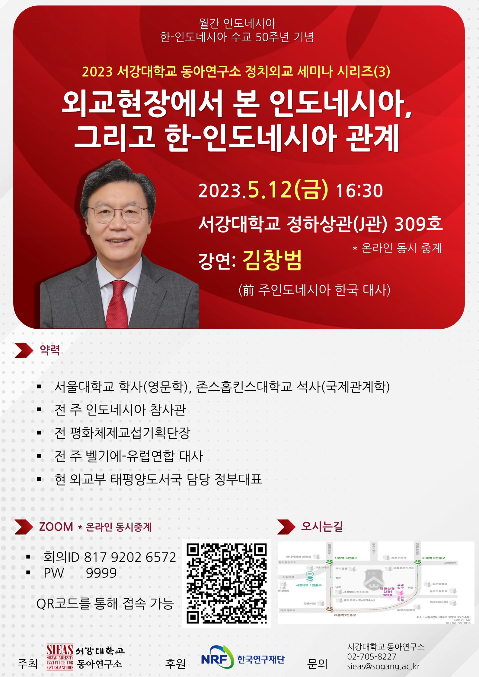 서강대학교 동아연구소 한-인도네시아 50주년 수교 기념 인도네시아 정치외교 세 번째 강연을 진행하오니, 많은 관심과 참여 부탁드립니다.